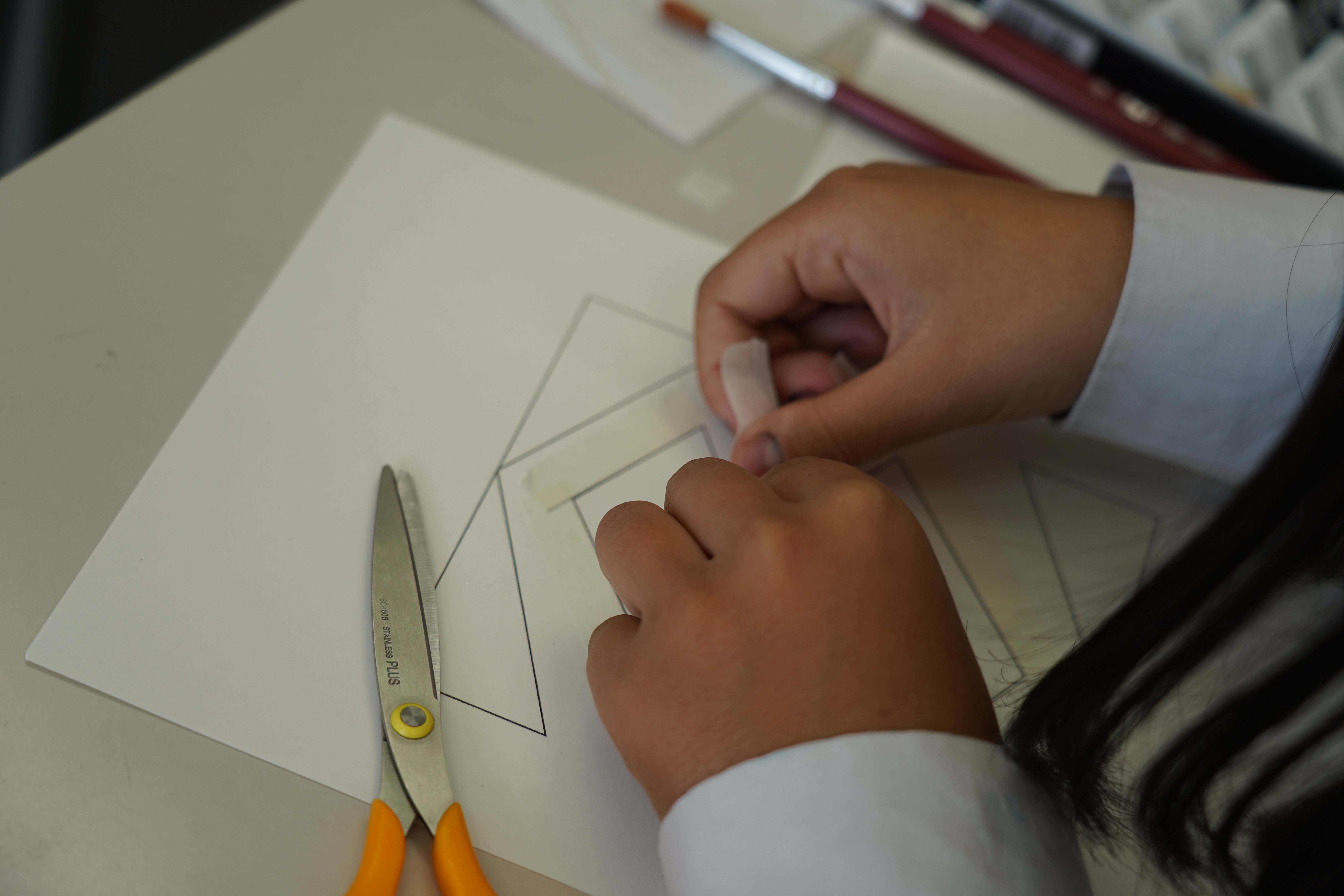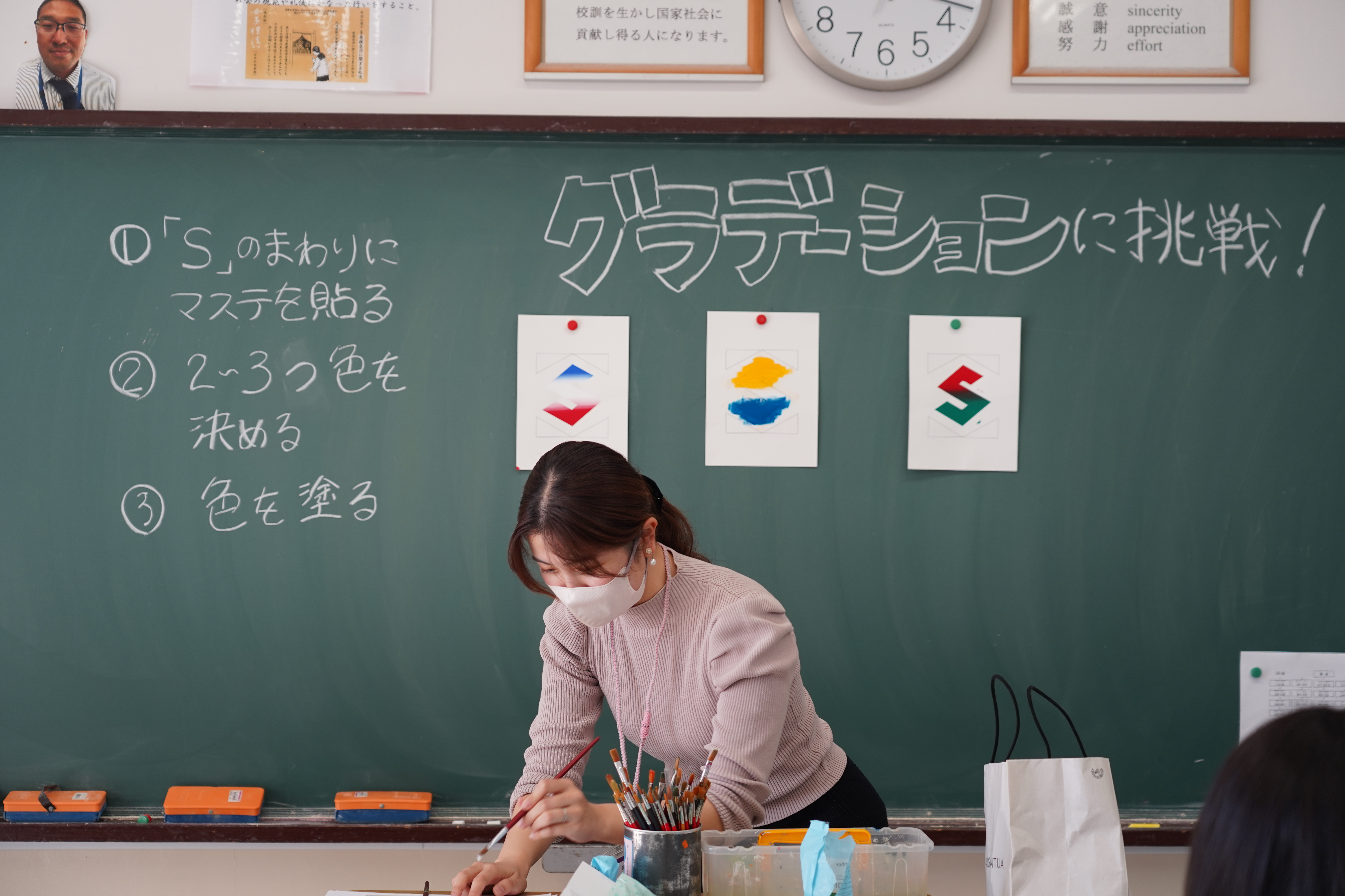 11月15日(土)第5回学校説明会を開催しました。今回の体験授業は、マクラメコースター作りやアクリルガッシュでグラデーション描き、おもしろい確率の世界について学ぶ3つの授業を行いました。中学生の皆さんは真剣な表情で取り組んでいました。
