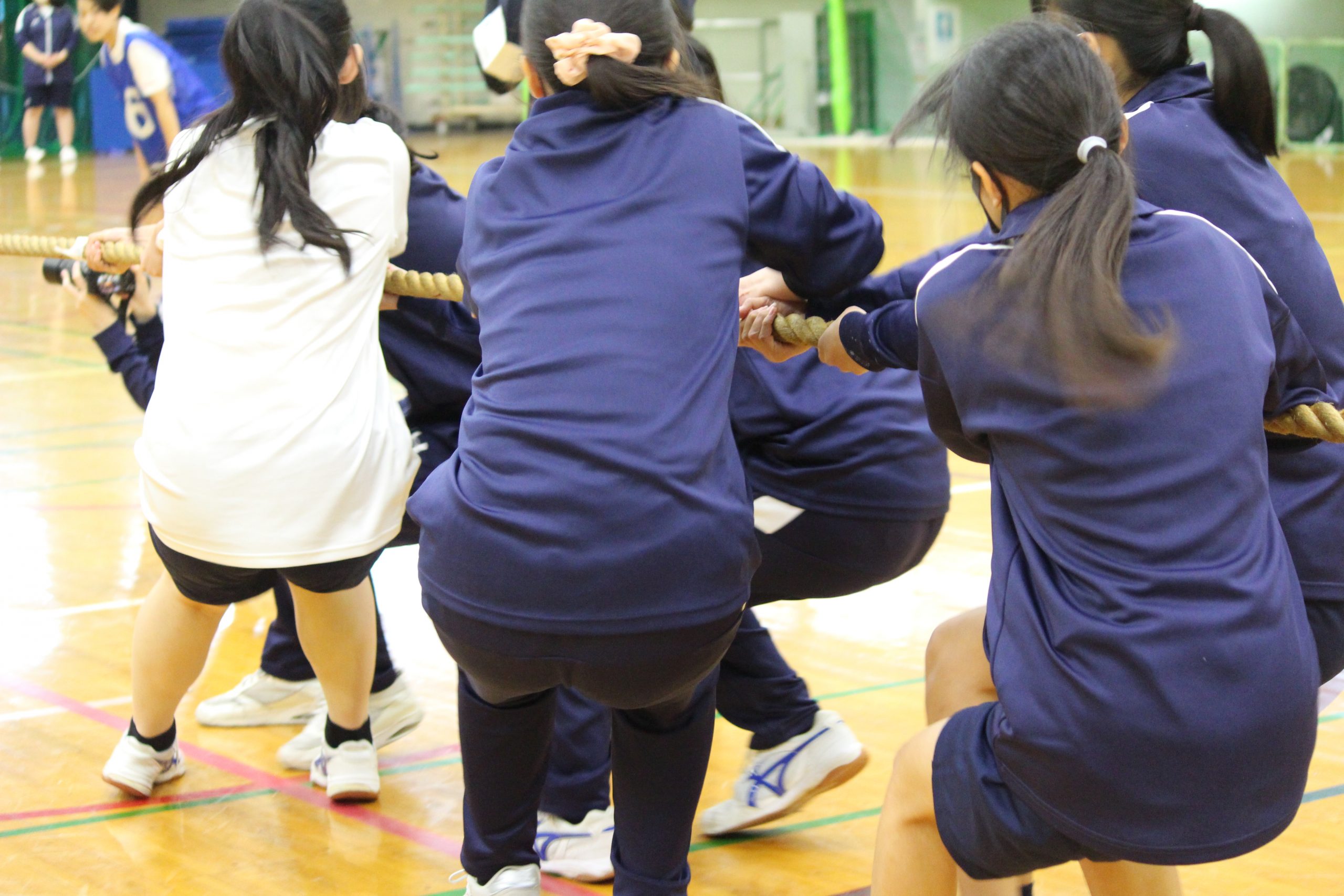 11月11日(月)、横浜平沼記念体育館でスポーツ大会を行いました。前期に予定していたスポーツ大会は、雨天のため延期となり、今回初めて体育館を借りて開催しました。今年の競技は、ドッジボール、綱引き、玉入れです。どの競技も各クラス声を掛け合いながら、一致団結して取り組んでいました。