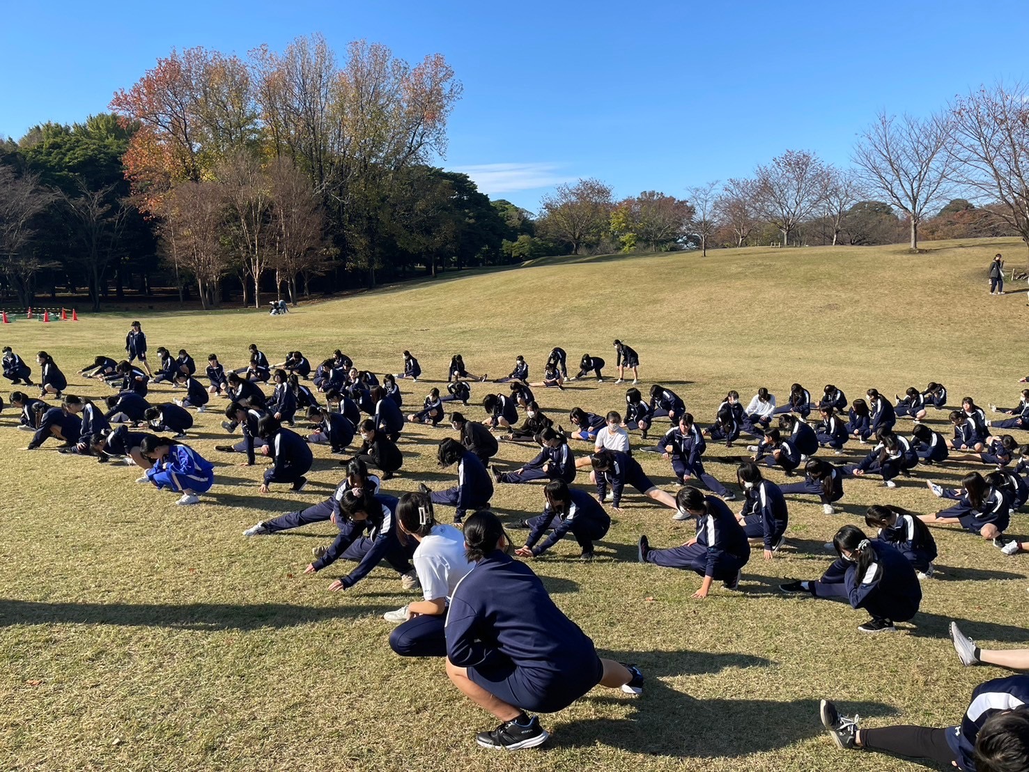 11月27日(水)、根岸森林公園でマラソン記録会を行いました。今年は、約2,5kmの距離を全学年一斉に走りました。1位の生徒は15分で完走することができました。自然豊かな場所で実施することができて、走り終わった生徒は達成感に満ち溢れていました。