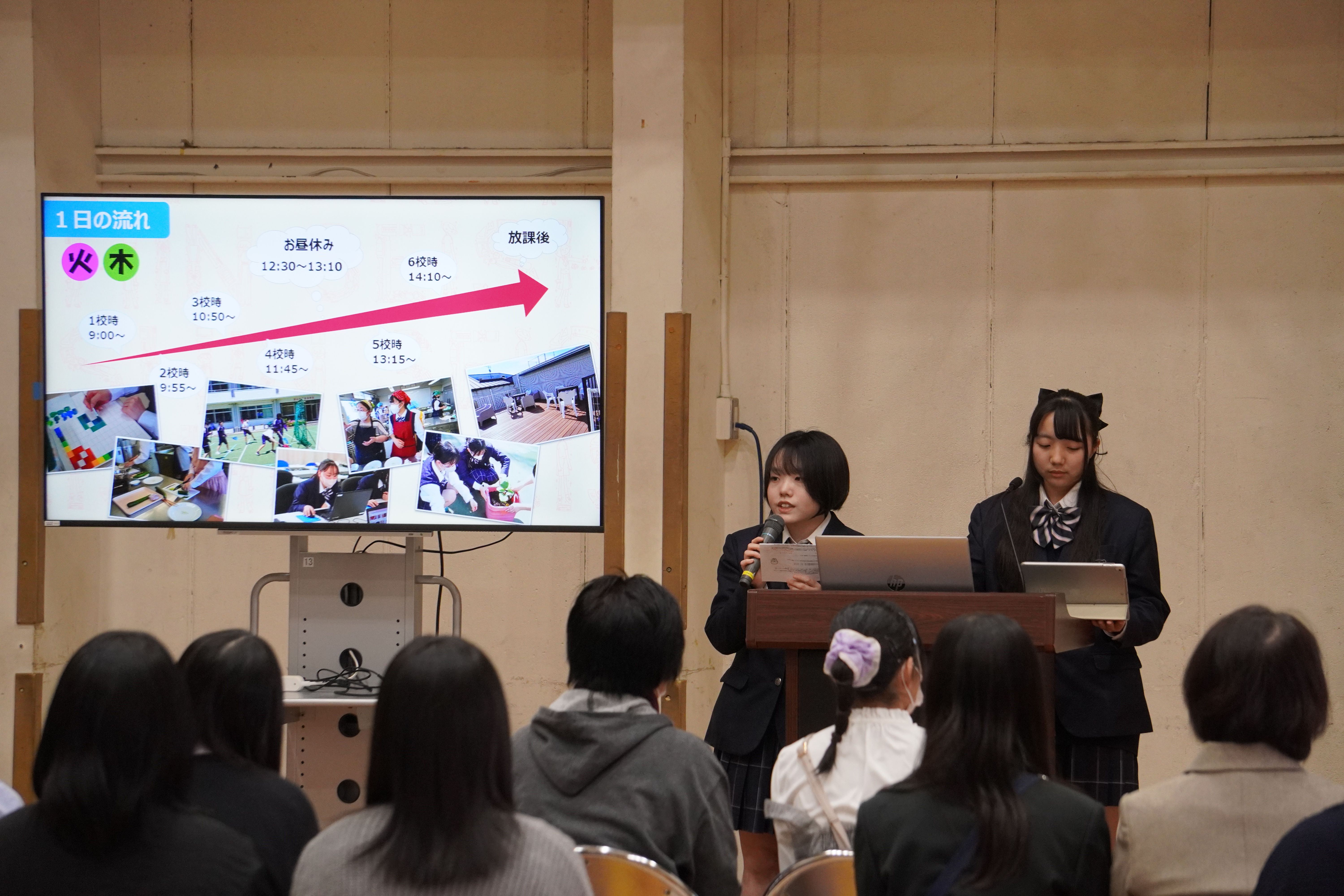 本校の学校説明会では、在校生から学校生活の様子や清心女子高校に入学したきっかけについての話があります。有志の在校生も補助役員として当日手伝いをしてくれているので、学校の雰囲気を感じることもできます。次回が最後の学校説明会になります。体験授業もありますので、ぜひホームページからお申し込みください。