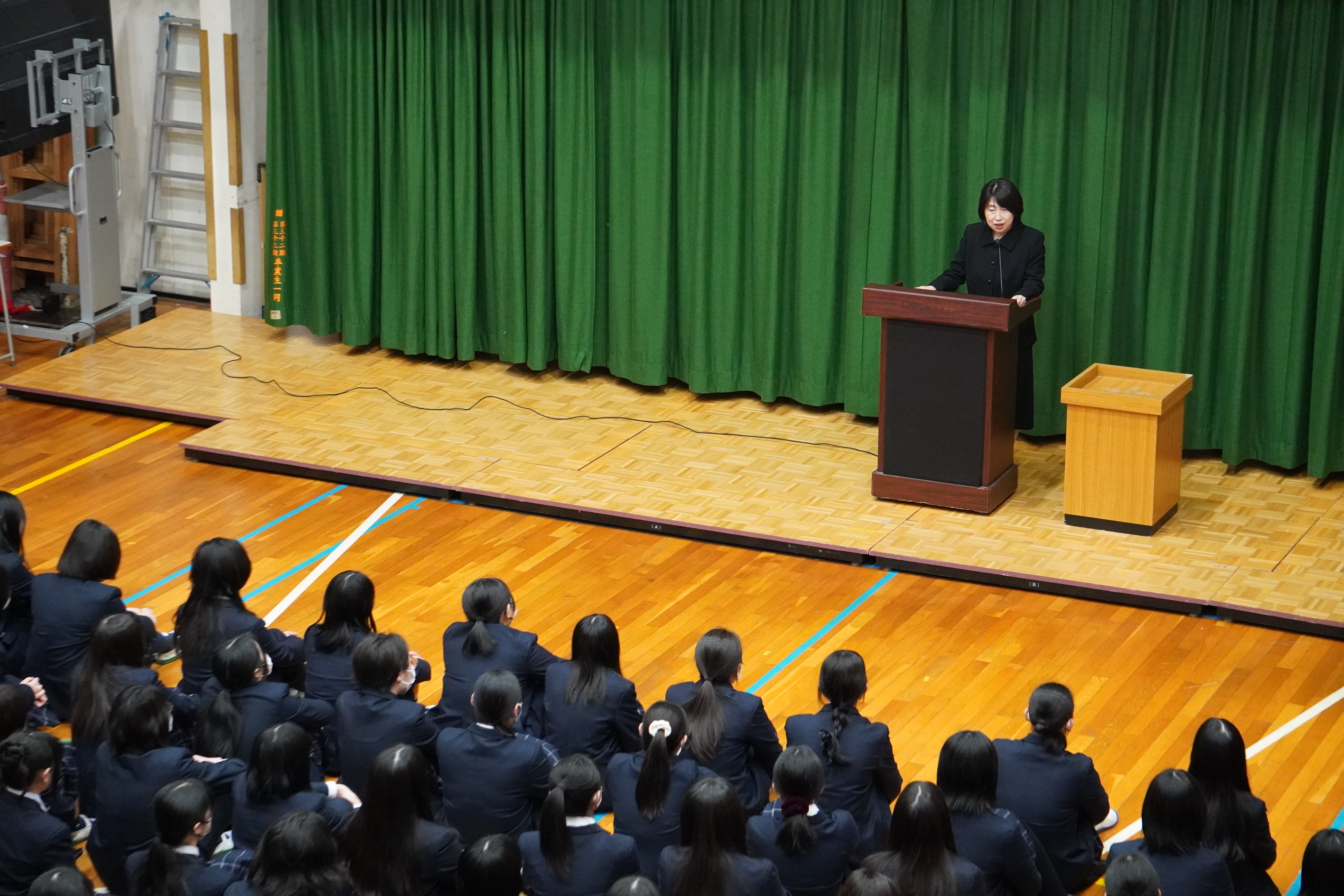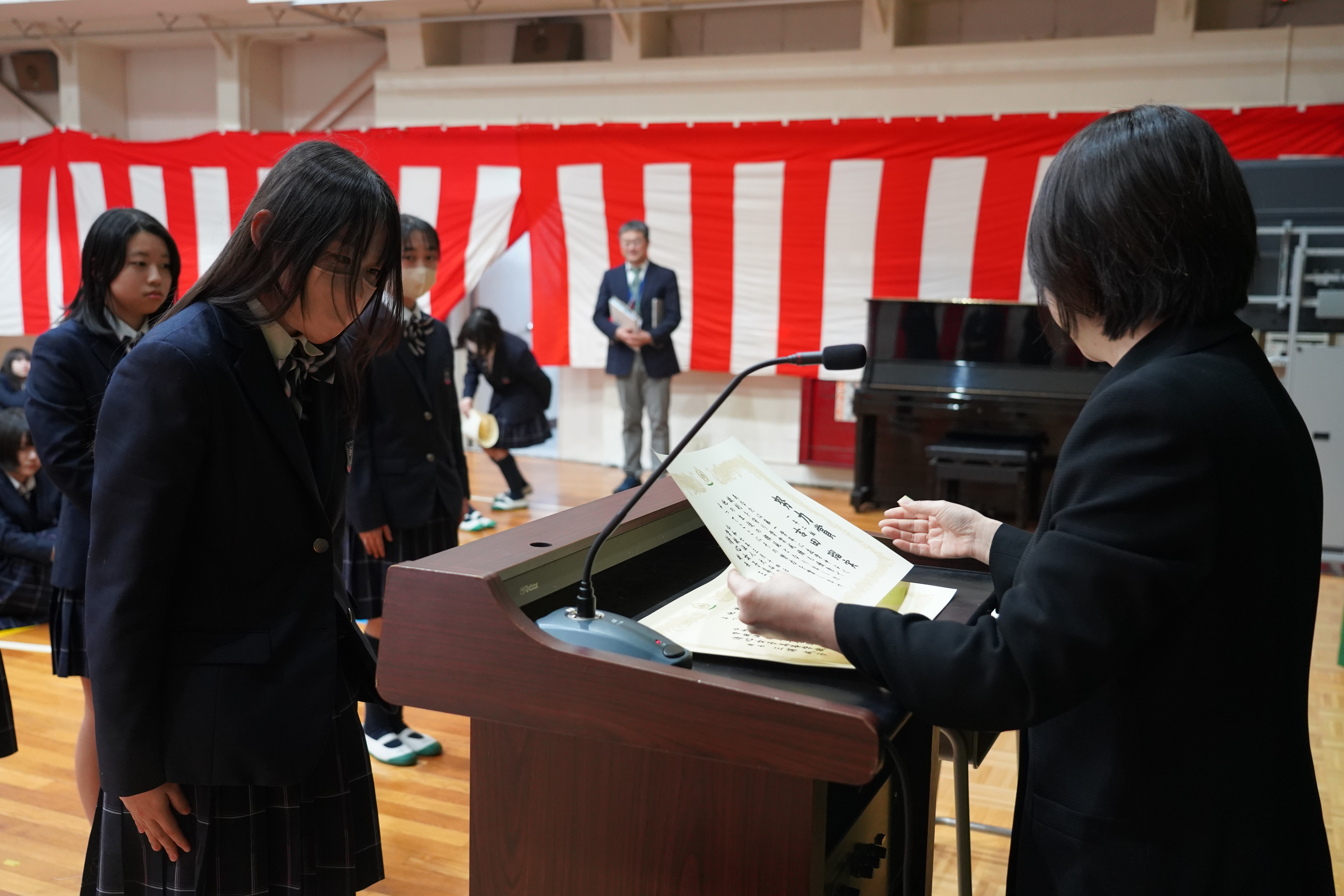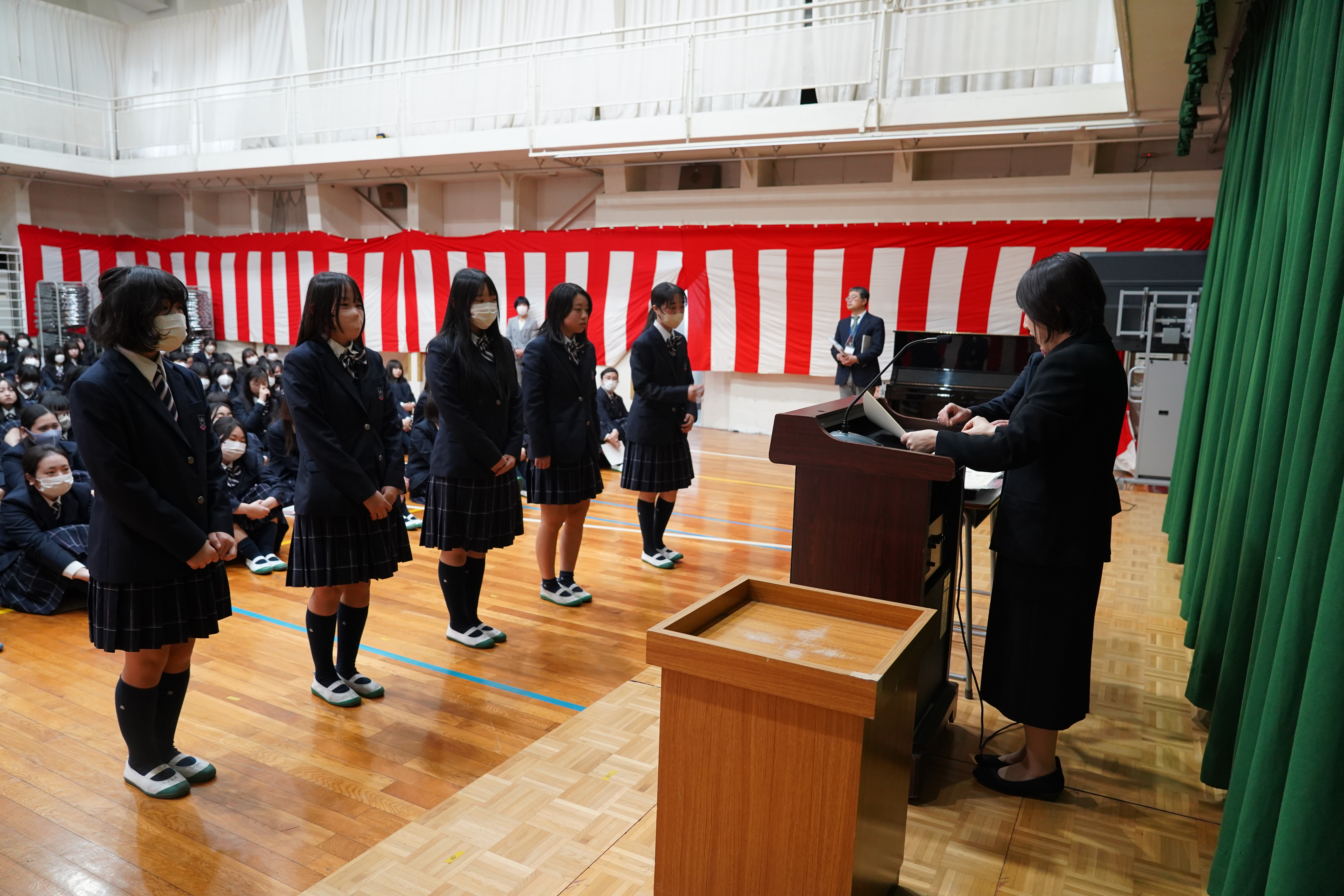 3月14日(金)、体育館で修了式が行われました。校長先生や生徒支援部の先生の話、部活動や検定などの表彰がありました。春季休業中の過ごし方に気をつけて、4月にまた元気にお会いしましょう。